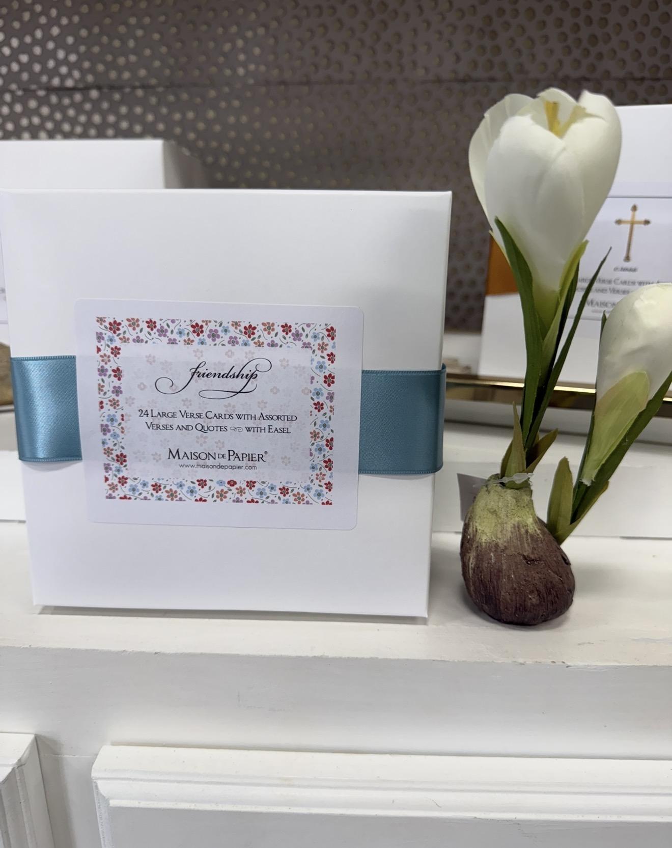 Elevate your gifting or decor experience with our exquisite 5.5" verse cards, elegantly displayed with a gold easel. This stunning card features a heartfelt verses, beautifully presented on a gold easel, making it a perfect keepsake for any occasion. Each card set comes perfectly wrapped in a luxurious ribboned box, ensuring a delightful unboxing experience. Ideal for expressing your sentiments, these cards are a thoughtful gift for anyone.